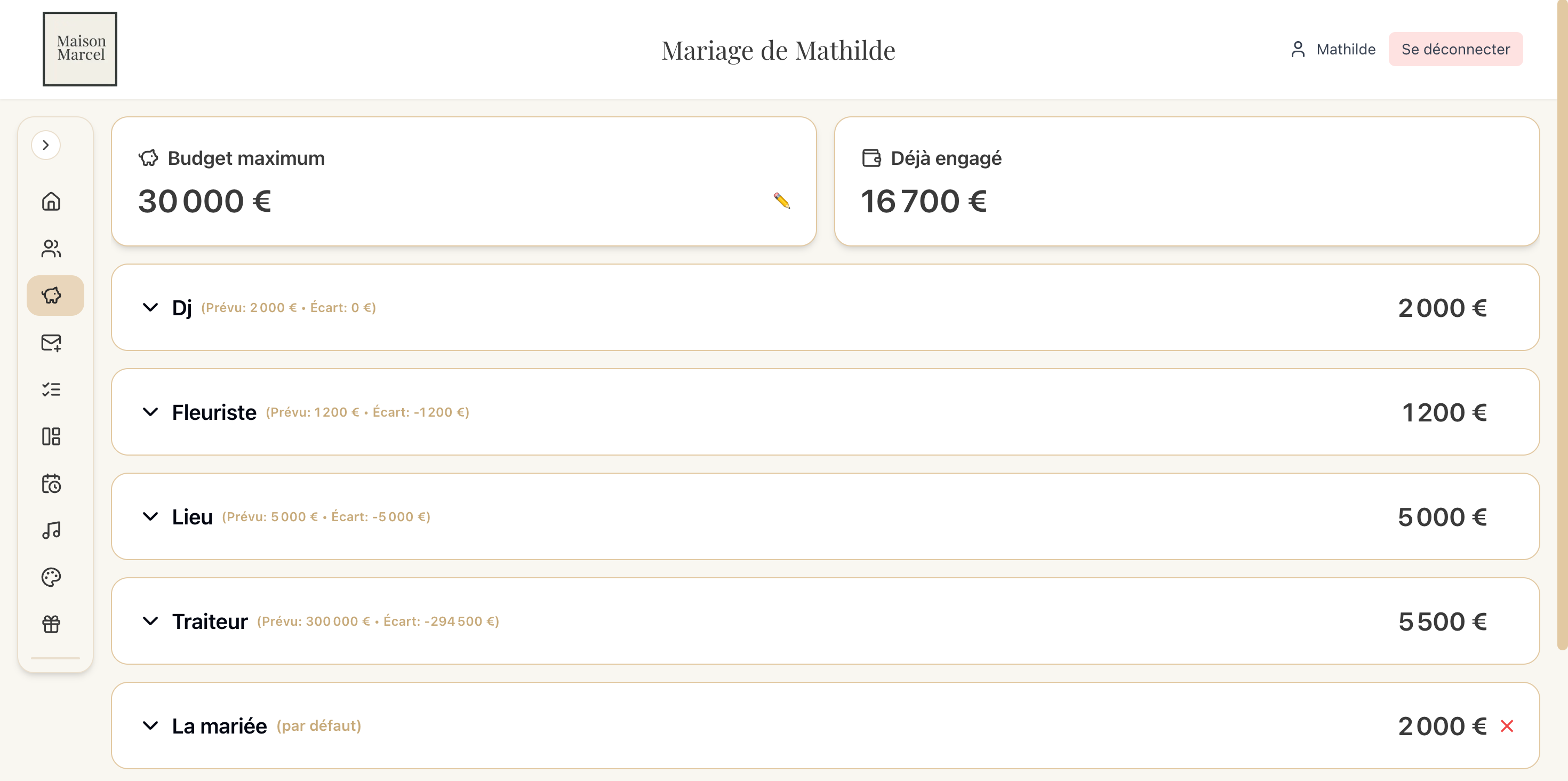 La plateforme Maison Marcel est un logiciel d’organisation de mariage en ligne conçu pour les futurs mariés, par des mariés.