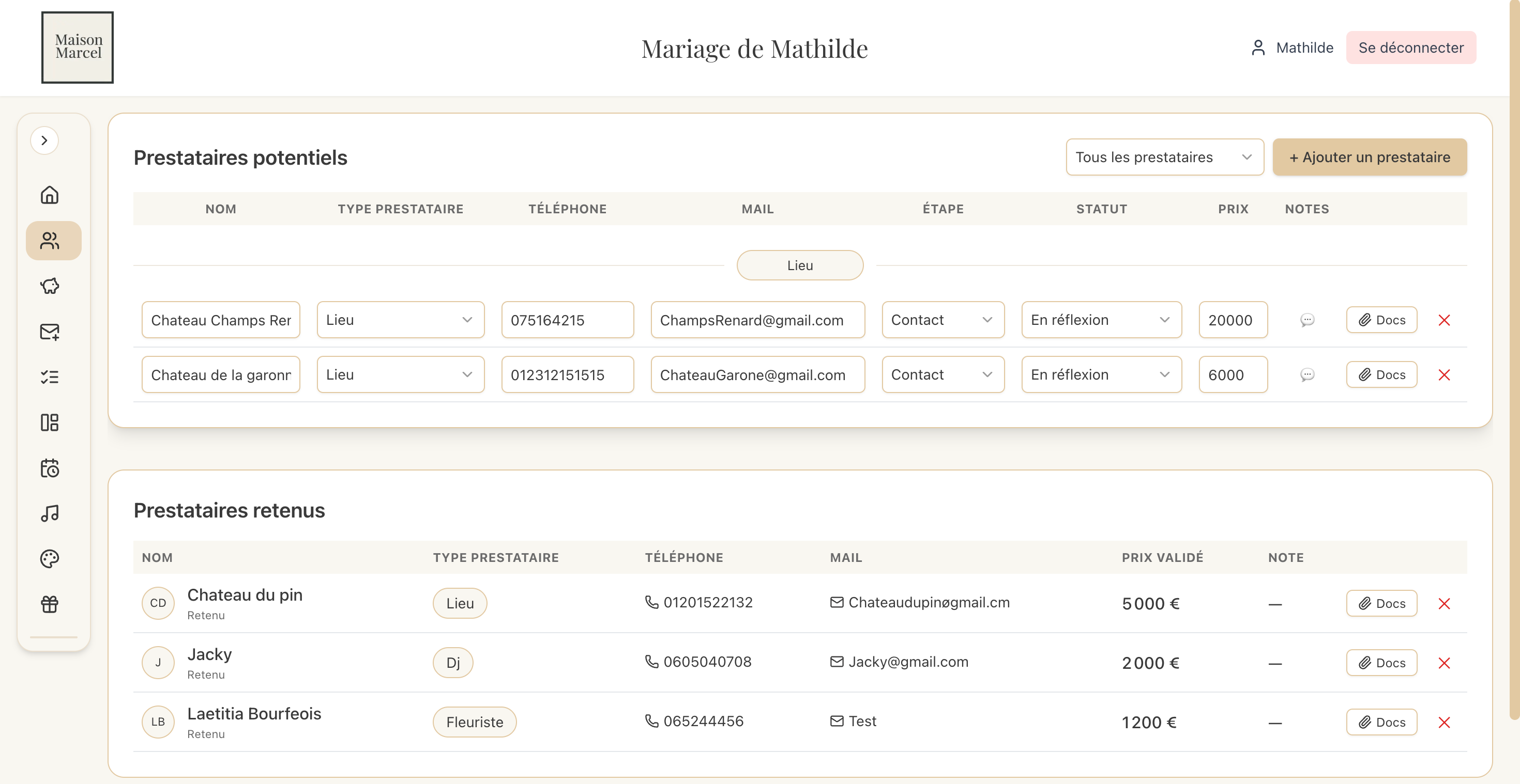 Contrairement aux outils génériques, la plateforme Maison Marcel a été développée exclusivement pour les couples en pleine préparation de mariage.