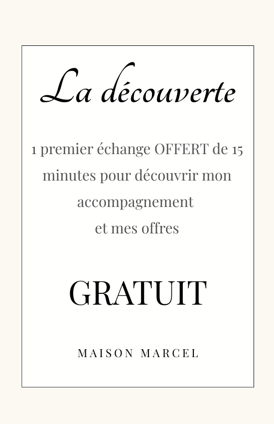 Réservez un rendez-vous découverte GRATUIT de 15 minutes. C’est l’occasion de faire connaissance et de répondre à toutes vos questions sur mes offres.